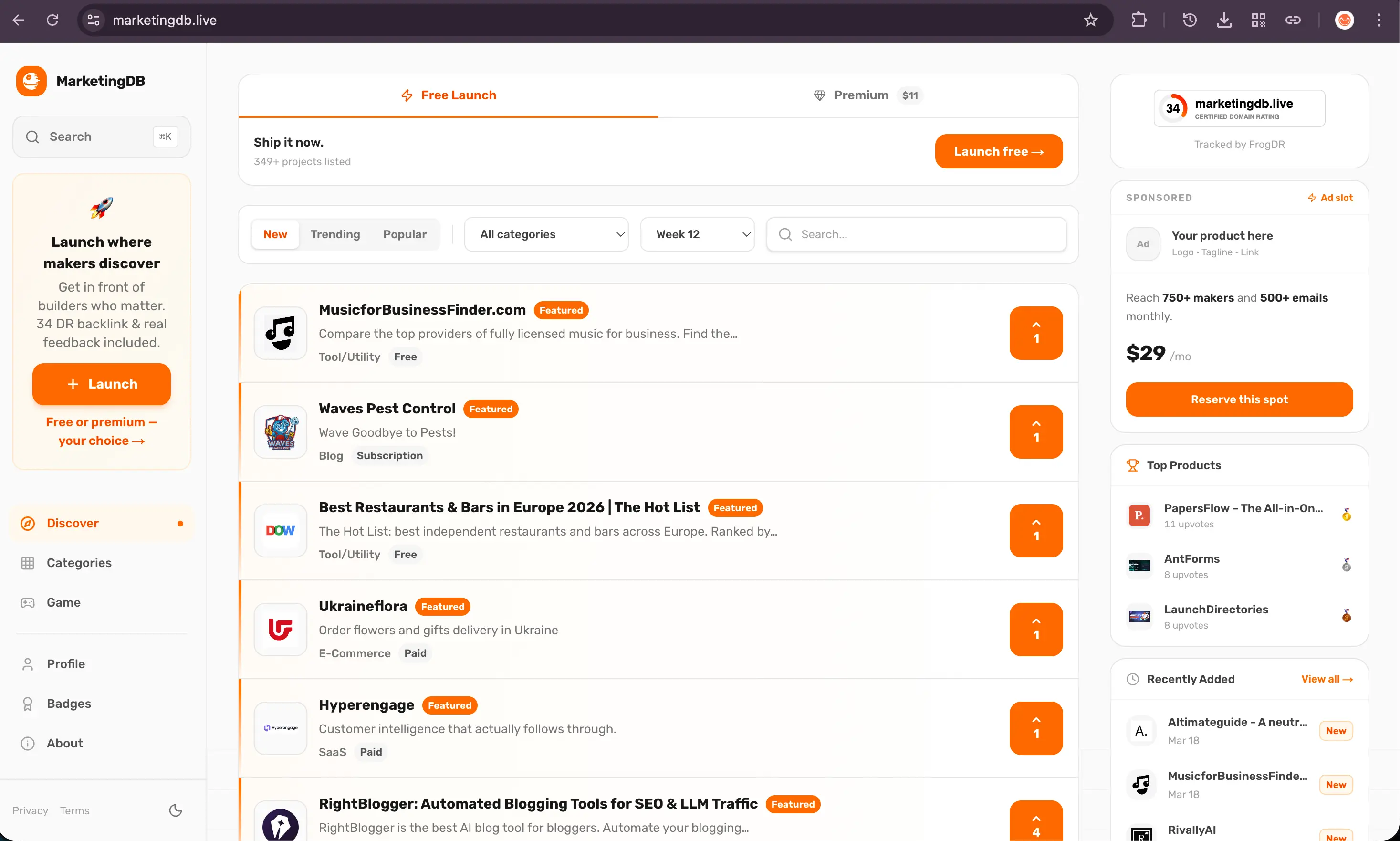 The best place to launch and discover great products. Get visibility, feedback, and SEO backlinks. https://marketingdb.live/