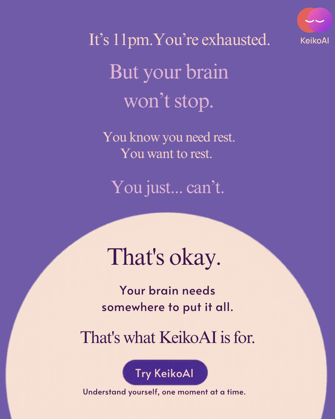 You don't have to know exactly what you're feeling. That's what KeikoAI is for.View full postRia Naik@rianaik·18hrYou don't have to know exactly what you're feeling. That's what KeikoAI is for.0011