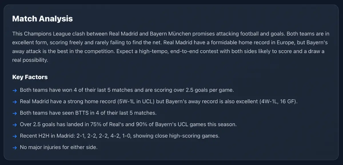 AI Football Predictions offers AI-powered predictions and post-match analysis for top European football leagues, including the Premier League, Champions League, and FA Cup. The platform provides data-driven match insights and tactical analysis, helping users make informed betting decisions. Users can find high-confidence picks and detailed predictions for upcoming matches, along with analysis of team form and match dynamics. All predictions and analysis are intended for informational and entertainment purposes only, and users are advised to gamble responsibly.