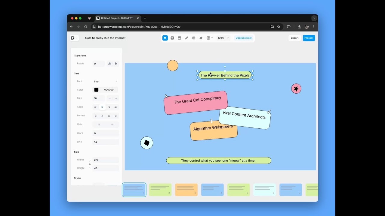 Create professional presentations for free with Better Powerpoints. The best free AI PowerPoint presentation maker that runs in your browser. No watermarks, no uploads, export to PPTX instantly.