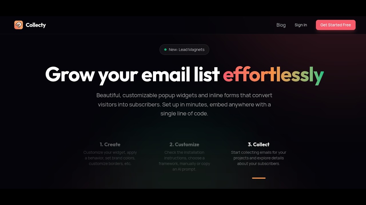 Collecty allows you collect emails easily from your websites. Perfect for lead-magnets, waitlists, newsletters, etc.