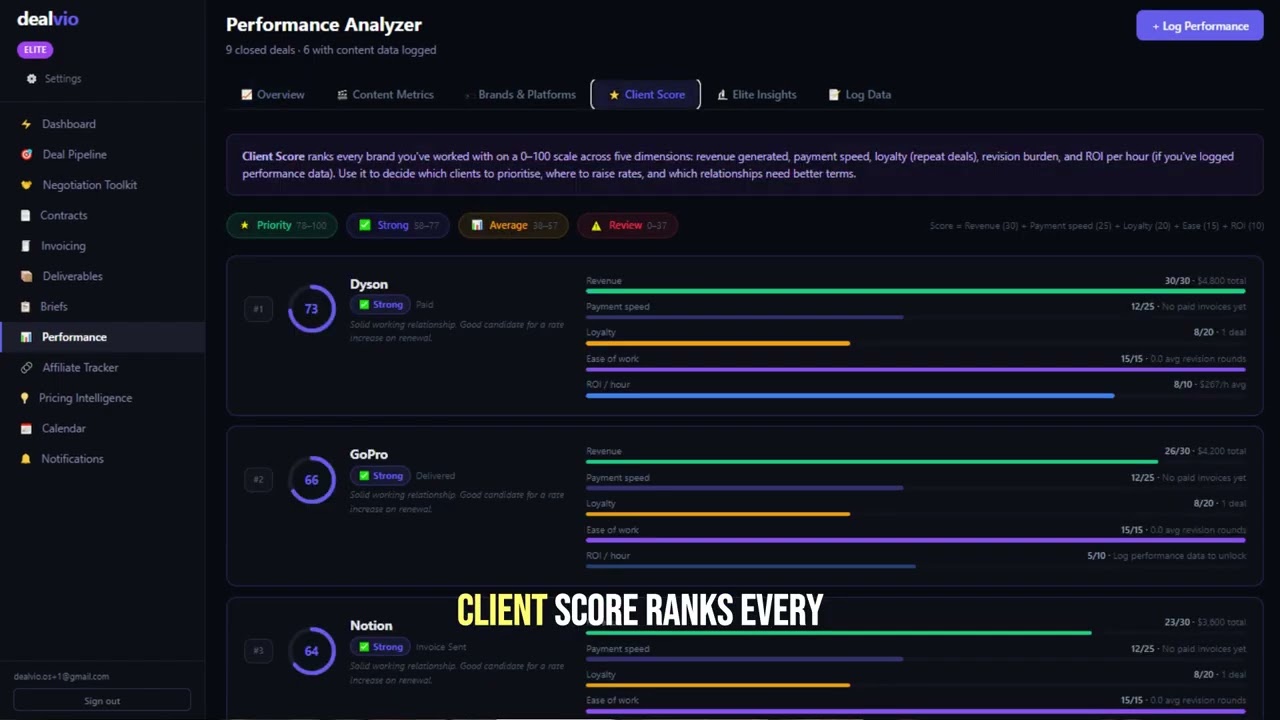 Dealvio is the all-in-one platform for content creators and influencers managing brand deals — from first contact to final payment. It addresses the chaos of managing brand deals by consolidating communications and documentation in one place. Creators often find themselves juggling briefs in Gmail, rates in a notes app, and contracts on WhatsApp, leading to inefficiencies and missed opportunities. Dealvio helps creators avoid leaving money on the table by providing insights into market rates, enabling them to negotiate better deals. It also streamlines invoicing and payment tracking, reducing the hassle during tax season by keeping organized records of invoices and expenses. With Dealvio, every deal is tracked through its lifecycle, complete with pipeline stages, deadlines, and priorities, allowing creators to focus more on their content and less on administrative tasks.