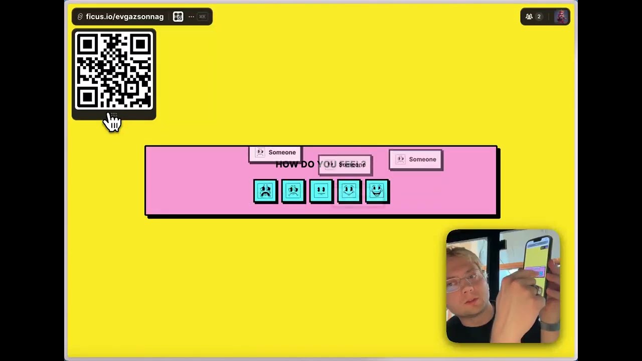 Give your colleagues, viewers, meeting participants a QR code or a link and let them connect to your app. See them using it in real-time. Ficus runs on a blazingly fast real time DB to sync all updates.