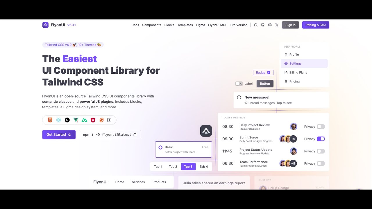 FlyonUI is the easiest, free and open-source Tailwind CSS UI components library with semantic classes.