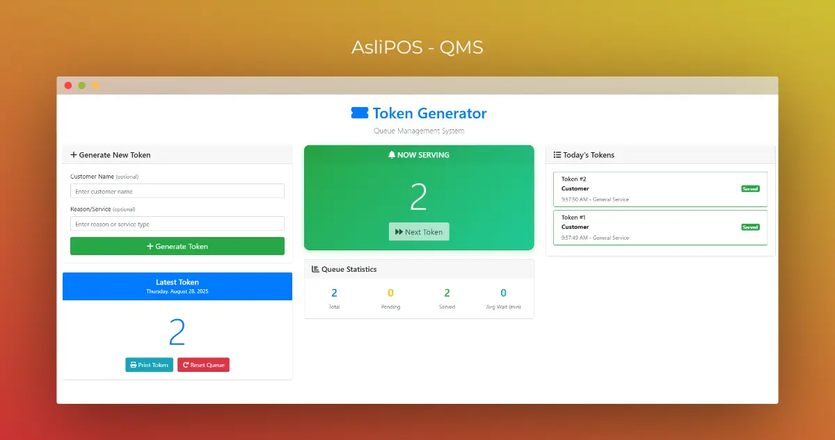 Generate and manage tokens instantly with our free, privacy-first Token Generator. No sign-up required, no data stored on our servers – perfect for businesses, clinics, and service counters.