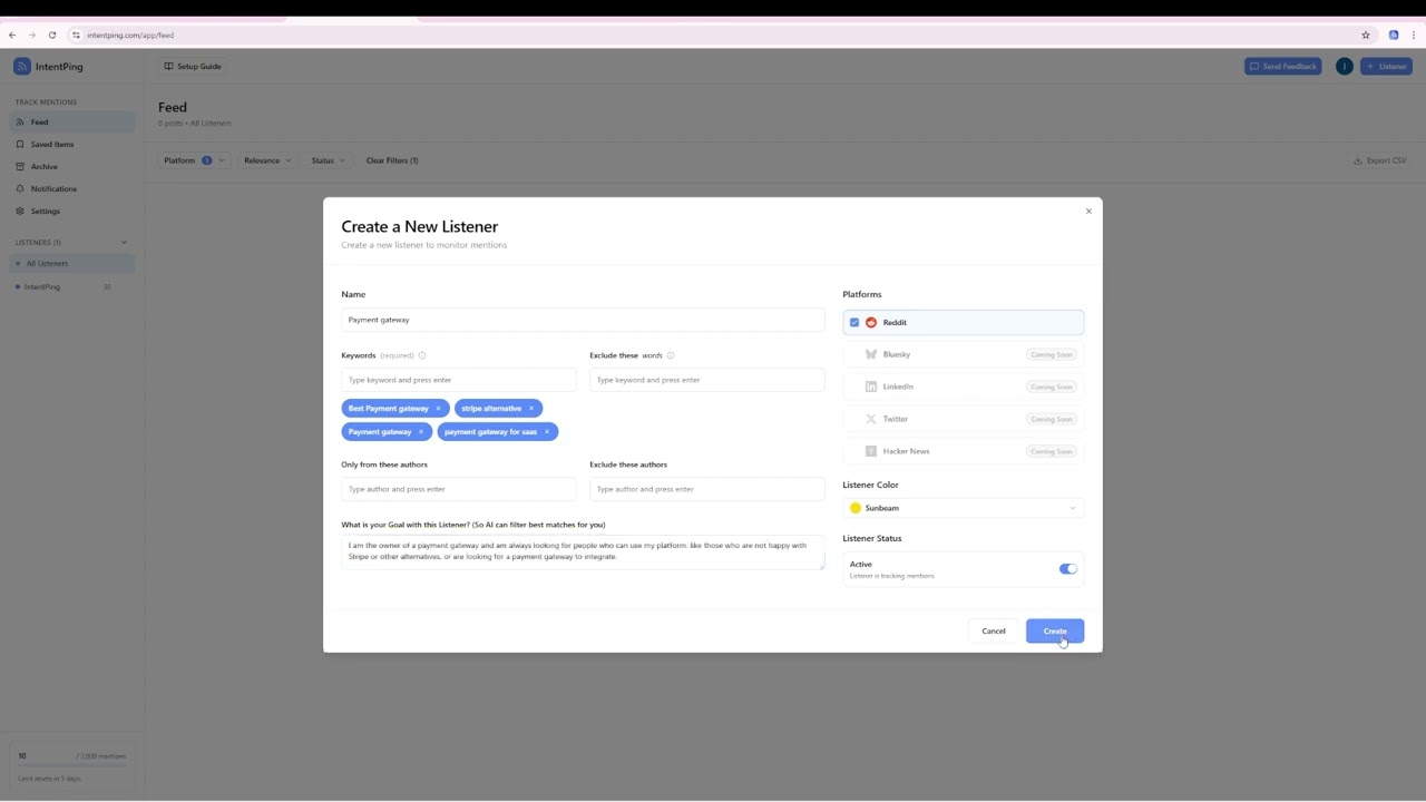 IntentPing helps you detect high-intent conversations across public social platforms so you can engage at the right moment.