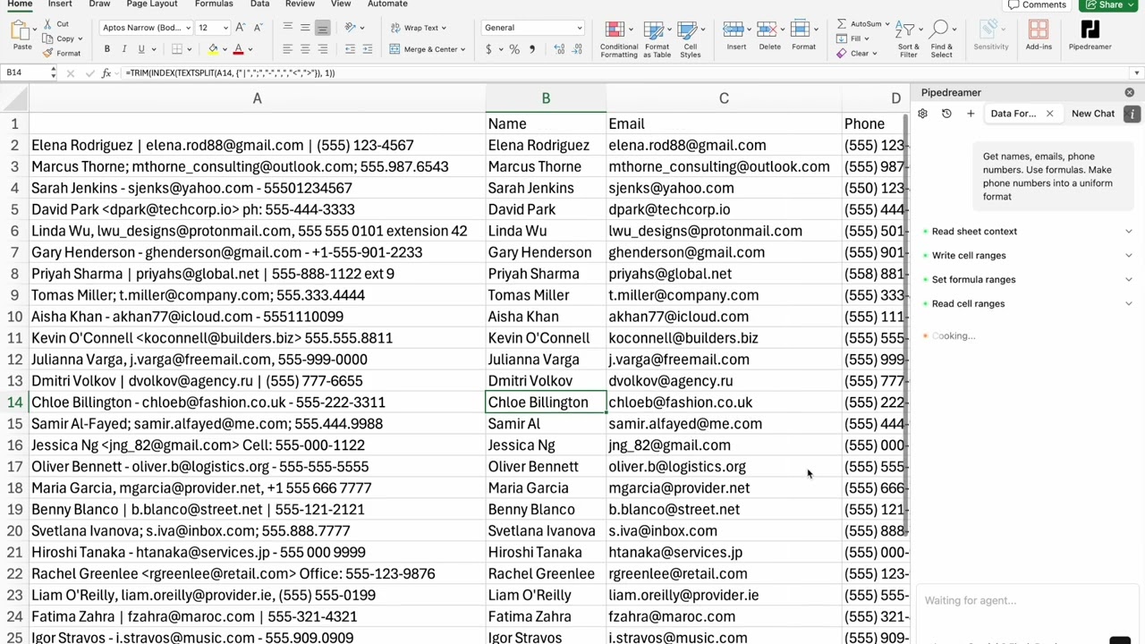 Pipedreamer makes spreadsheets easier - we are an AI add-in for Excel and Google Sheets that reads files, writes formulas, runs Javascript, and ensures you never have to copy cells by hand again. Prompt in plain English (or any other language) and save hours. See changes and revert at will.