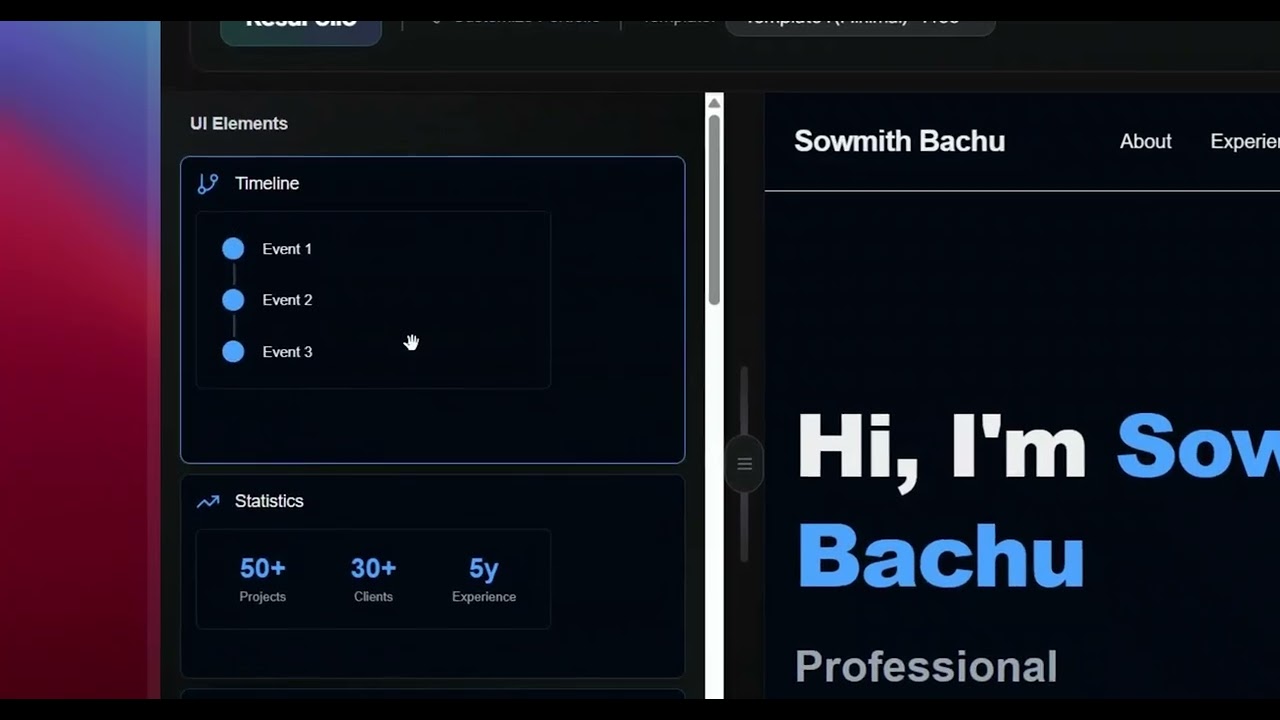 Drag and drop PDF resume upload for easy portfolio creation Selection from multiple professionally designed templates (Minimal & Clean, Bold & Dynamic, Modern & Elegant) Customizable UI