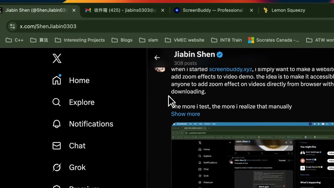 Screen recorder for macOS with automatic zoom effects. ScreenBuddy tracks your cursor clicks during recording and automatically adds smooth zoom animation (1.25x–5x) — no manual keyframing needed. Includes 18 gradient backgrounds, annotations, trim/crop, webcam overlay, and MP4/GIF export. Works 100% offline. $9.99 one-time, no subscription.
