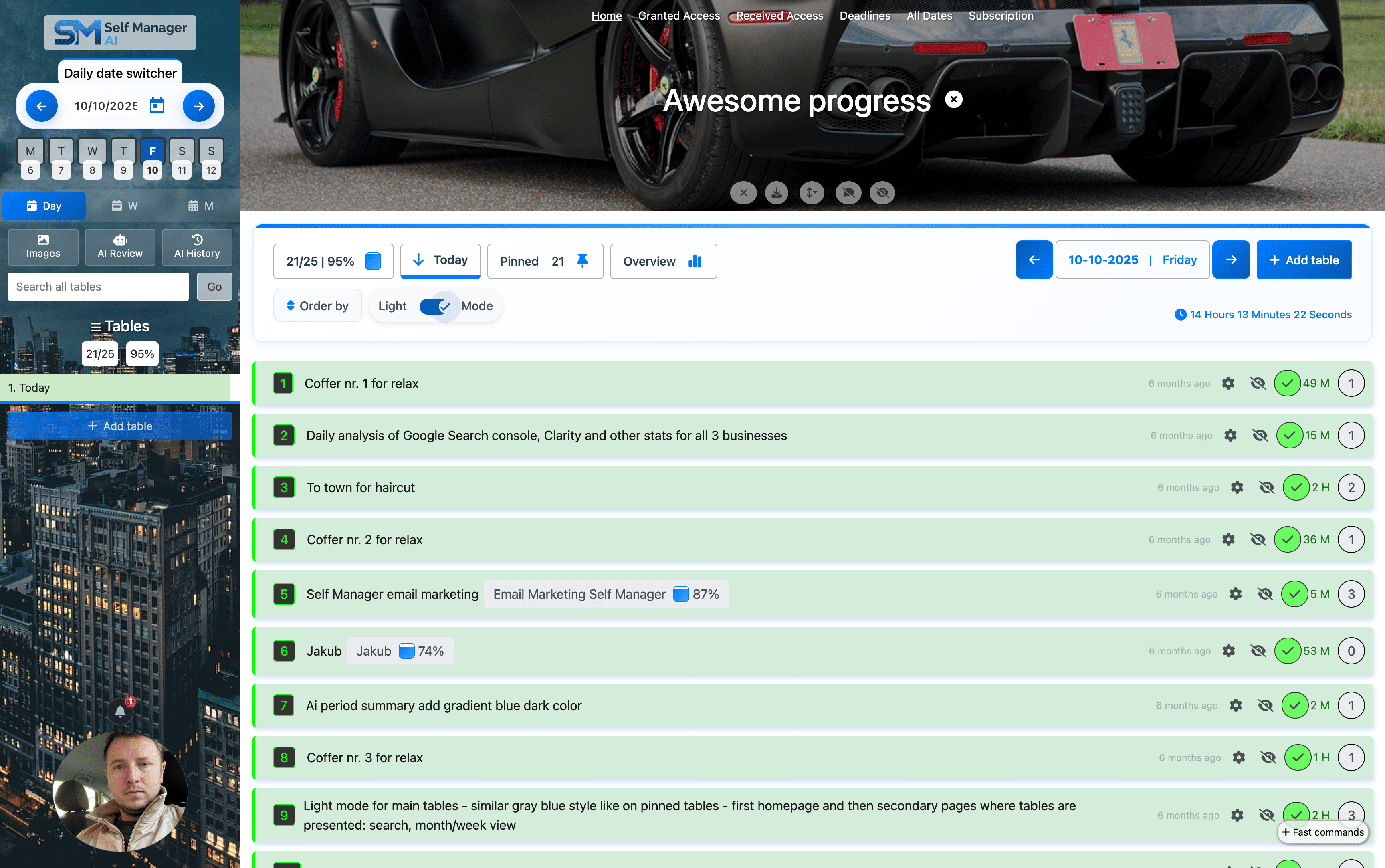 SelfManager.ai is an AI project and task management tool designed for individuals and teams. It allows users to plan tasks, add comments, take notes, track time, and use AI on their real data. The platform combines task management, time tracking, and AI insights in one place, enabling users to plan in seconds and stay focused on what matters. Users can ask questions in plain English to get instant answers about deadlines and blockers. The AI can automatically extract tasks from meeting notes, emails, or specifications, assigning and priorities.