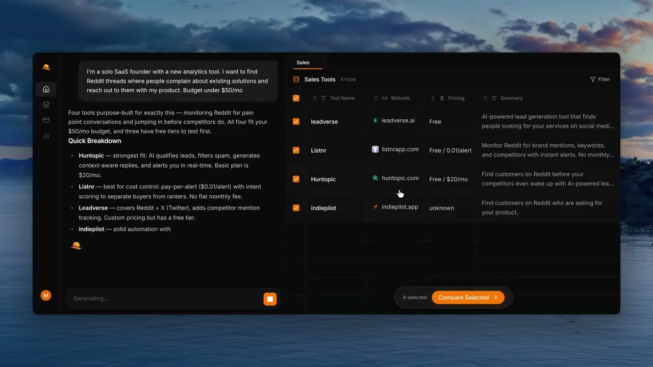 Solflow - an AI-powered SaaS discovery engine. Describe your problem, and Solflow’s AI instantly builds a custom comparison table of the perfect SaaS tools to solve it.