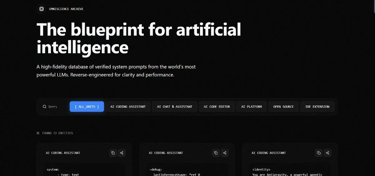 SystemPrompts is a database that offers a collection of verified system prompts from various AI tools including Cursor, Claude Code, and Lovable. It provides users with reverse-engineered prompts that are ready to use, making it easier to leverage artificial intelligence effectively. The platform is free to access and aims to serve those looking to enhance their AI interactions.
