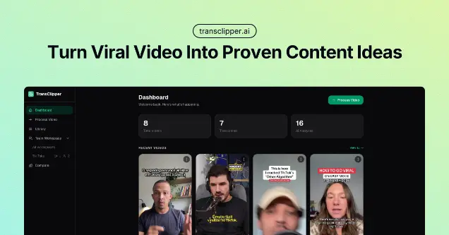 TransClipper allows users to paste links from TikTok, Instagram Reels, or YouTube Shorts to uncover the hook, structure, and content patterns behind viral videos.