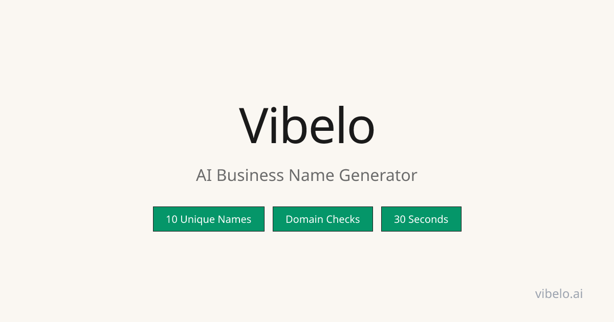 Vibelo is an AI-powered business name generator that helps users create distinctive names for their businesses. Unlike typical name generators that offer the same common suggestions, Vibelo utilizes multi-agent AI and linguistics to produce ten unique business names tailored to your specifications. Users can describe their business and the desired customer experience to receive personalized name ideas. The service is free to try, with a $5 fee to unlock all ten generated names, and it includes domain and trademark checks. Vibelo aims to provide names that stand out and evoke a strong brand identity, challenging the norm of conventional naming practices.
