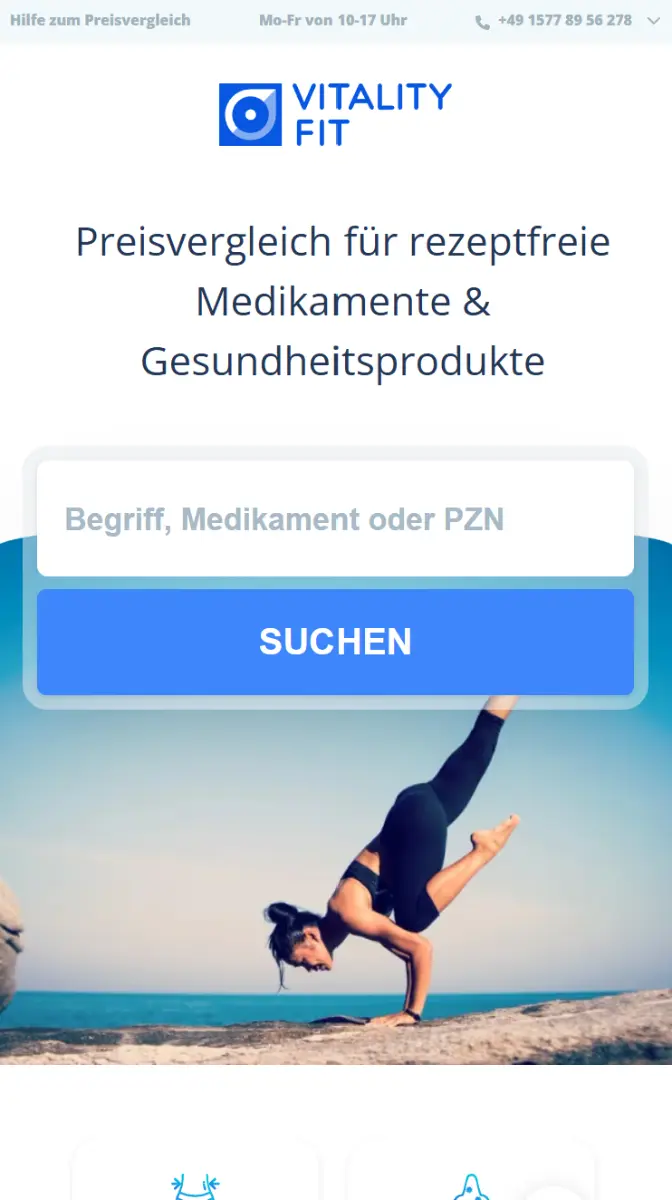 Vitalityfit is an independent price comparison platform for health, beauty, and wellness products in Germany. It aggregates daily-updated prices from over 50 licensed online pharmacies, drugstores, and specialty shops. Users compare prices, shipping costs, and availability in one view — free, with no paid placements. Results ranked purely by price, no sponsored listings. Available on Web, iOS, and Android. Operated by Xealti UG.